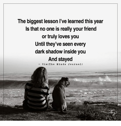Sporting a black and white image of a young girl sitting by the seaside with a dog next to her, the caption, ascribed simply to “The Minds Journal,” read, “The biggest lesson I’ve learned this year is that no one is really your friend or truly loves you until they’ve seen every dark shadow inside you and stayed.”